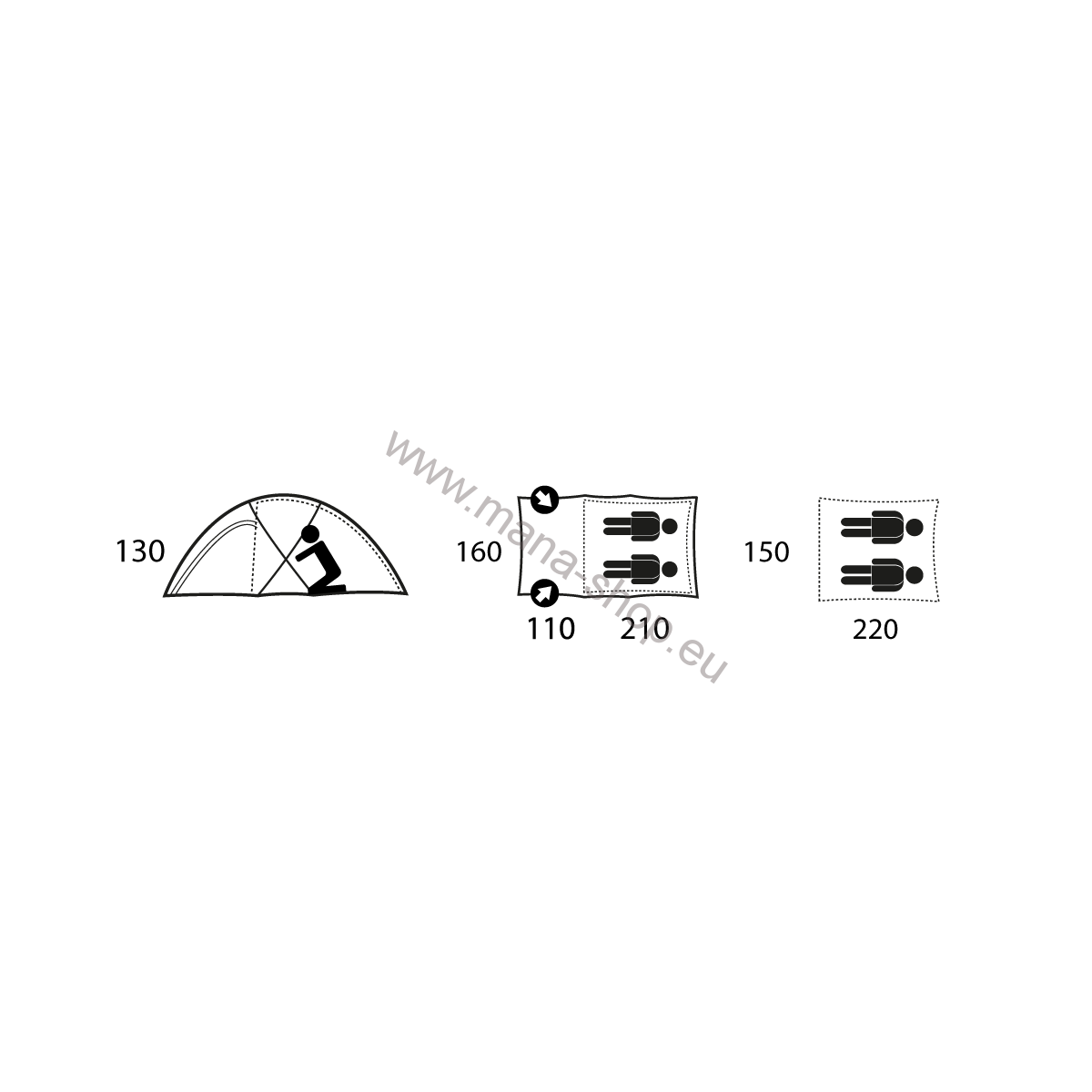 Außenzelt: 210T Polyester Ripstop, PU beschichtet 7000 mm/cm²