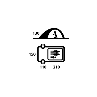 Das Zelt ist ein doppelhüllen  Zelt mit äußeren Aufbau und Duraluminiumpfosten mit durchschnittlich 8,5 mm. Das Außenzelt besteht aus 210T Polyester mit RipStop Material. Wasserdichtheit von Außenzelt 7 000 mm / cm 2. Innenzelt aus atmungsaktivem Nylon 210 T und Mesh Moskitonetz für eine gute Luftzirkulation gemacht. Der Boden ist beschichtet aus 190T Polyester mit PU 11 000 mm / cm 2 .